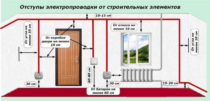 - Проводку не прокладывают в углах, впритык к оконным или дверным проемам. Рекомендуемое расстояние от таких мест к штробам не меньше 100 мм.