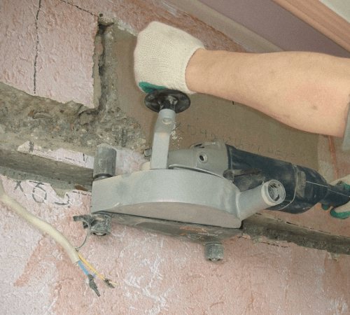 При резке стенорезом, материал стен совершенно не сопротивляется диску, поэтому подобных повреждений здесь не происходит. Более того, после вырезания штробы или ниши, можно применить обычную стамеску, и аккуратно выдолбить все что нужно изнутри.