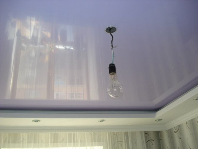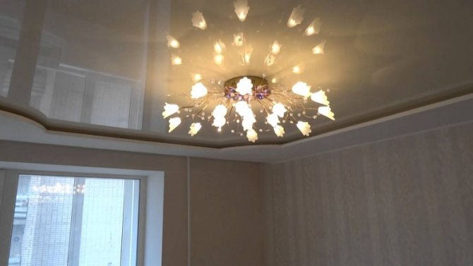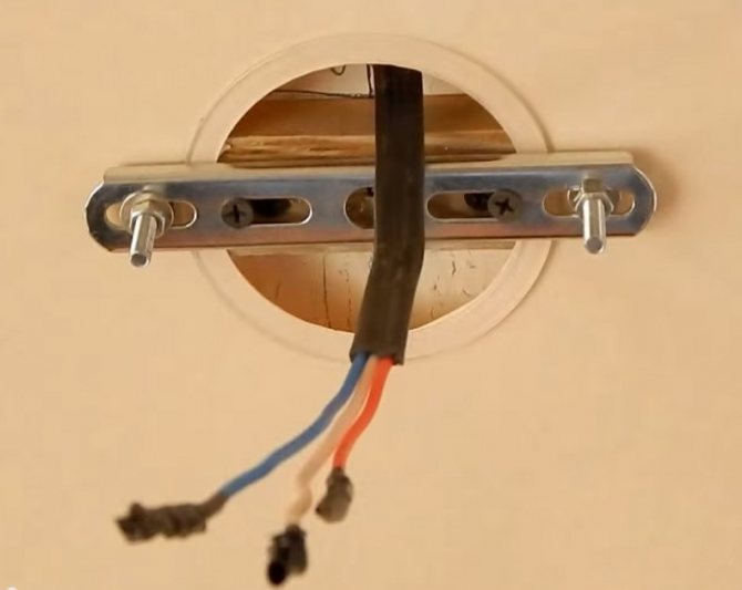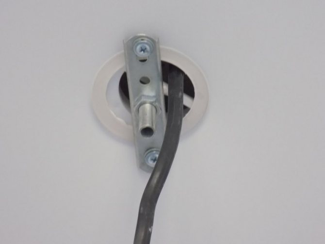 Важно: В случае натяжного потолка кронштейн закрепляется, благодаря закладному бруску, он соединяется с основным потолком.