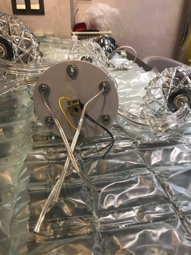 Изучаем люстру. Если всё установлено правильно двигаемся к следующему этапу. Не стоит спешить с установкой декоративных элементов и плафонов они монтируются немного позже.