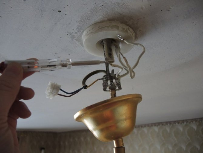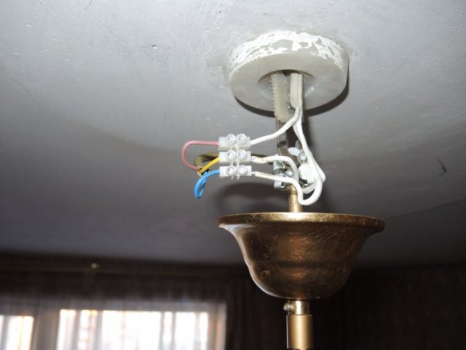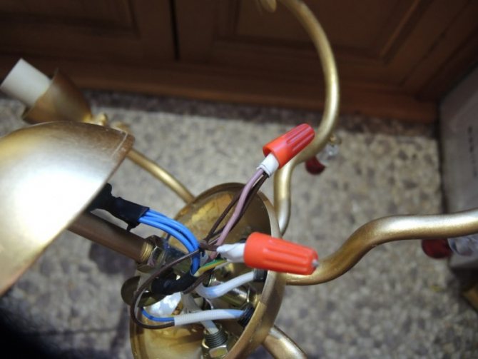 Соединяем люстру с питающими жилами