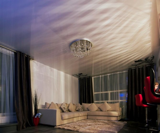 Кроме обычных ламп накаливания допустимо использование галогенных, светодиодных или люминесцентных – более экономно расходующих электроэнергию при том же уровне освещения. Повышенная стоимость окупается экономичностью и продолжительным сроком службы. А переливающиеся самыми разными цветами светодиодные потолочные люстры в интерьере выглядят просто роскошно.