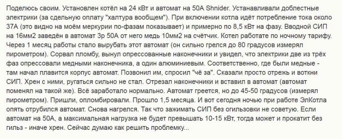 В ответвлениях, предполагающих соединение СИП с медным кабелем, могут применяться провода с жилами сечением порядка 16-ти миллиметров квадратных (использование меньшего показателя запрещено требованиями ПУЭ). Однако этот размер очень неудобен для сочленения с тонкими жилами ВВГ, поэтому такое соединение нуждается в специальном переходнике.