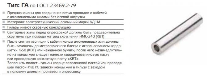 Гильзовые соединения образуются в соответствии с их названием. При этом концы проводников тщательно зачищаются, а затем вставляются в гильзу и плотно сдавливаются посредством пресса.