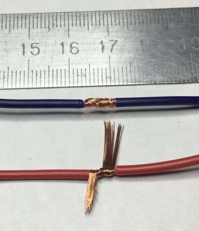 Технология подходит для проводников из меди – одного монолитного и одного многожильного. Алюминиевые проводники с разным сечением также допускается соединять параллельно. В случае с монолитным проводом понадобится снять больше изоляции, чем с многожильного.