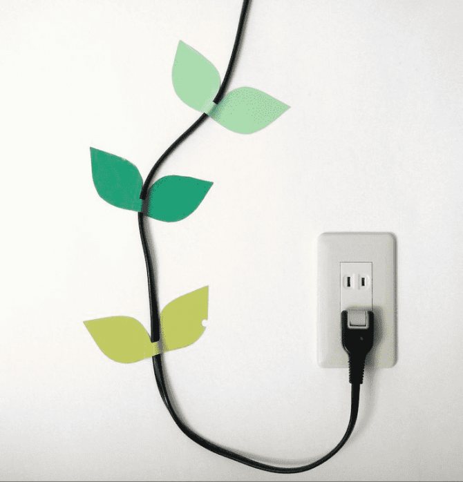 Проявите творчество и фантазию — создайте из проводов необычный рисунок. Чтобы получилась стильная инсталляция, нужно тщательно продумать контура рисунка, иначе провод на стенке будет выглядеть безвкусно и убого.