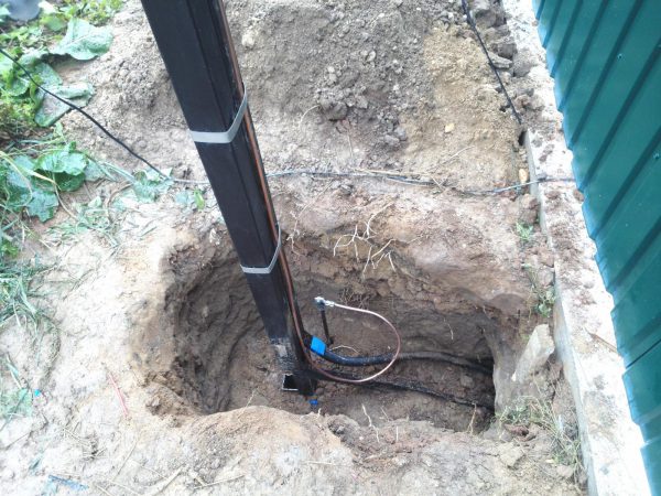 Опора должна быть заглублена не менее чем на 2,3-2,5 метра. После этого монтируются промежуточные опоры.