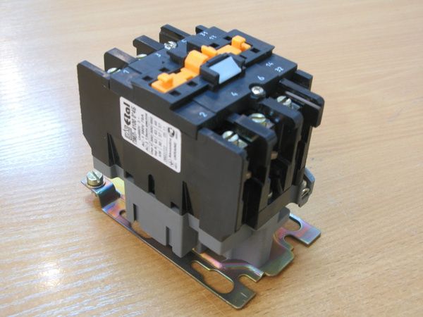 Замыкание контактов силовой цепи осуществляется контактором – аппаратом, в котором сцеплённая с якорем электромагнитного реле группа контактных пластин замыкается на неподвижные контакты, соединённые с входными и выходными клеммами подключения питающего напряжения сети и линий нагрузки.