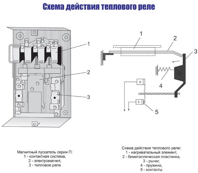 В последнем случае при запуске основная нагрузка приходится на контактор. Здесь тепловой модуль оснащен медными контактами, подключенными к входам пускателя непосредственно.