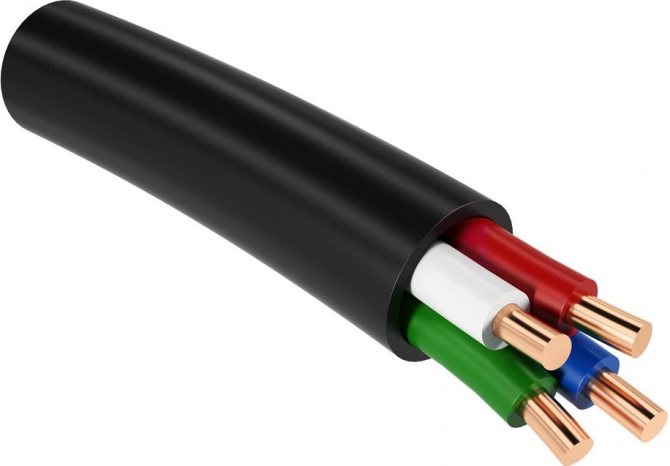 Он имеет медные жилы – от 1 до 5 штук. Сечение может составлять до 95 кв. мм. Например, маркировка 3×4 обозначает, что кабель трехжильный, а сечение жил составляет 4 кв. мм. Также есть дополнительные буквенные обозначения: т – кабель подходит для тропической зоны и помещений с влажностью воздуха до 98%; н – негорючий с маслостойкой изоляцией; хл – устойчивый к холоду, выдерживает морозы до -60 °С.
