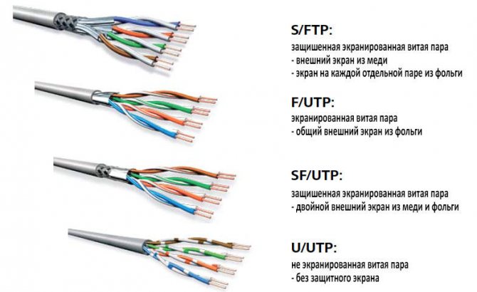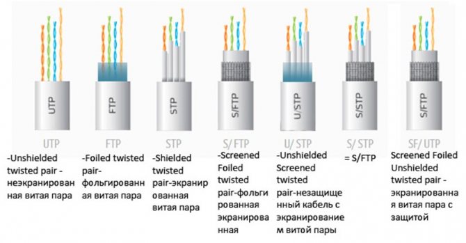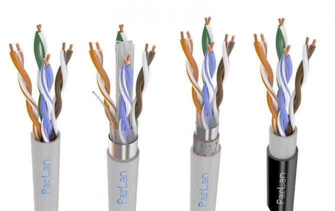 Основное различие — это наличие и вид экрана. Экран в витой паре служит для защиты сигнала от внешних помех. Например, когда не возможно проложить витую пару отдельно от силовых кабелей. Кроме этого, каждый производитель может добавлять и другие обозначения в зависимости от конструкции кабеля, например: