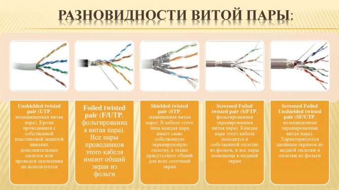 Аббревиатура UTP расшифровывается как Unshielded Twisted Pair — «неэкранированная витая пара». Кроме этого, существуют другие разновидности витой пары.