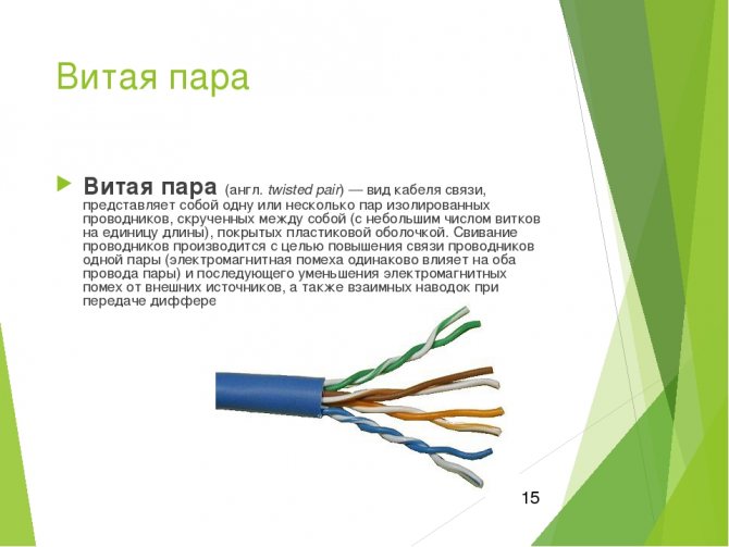 - Витая пара — это обобщенное название проводов, что используются для развертывания сети.
