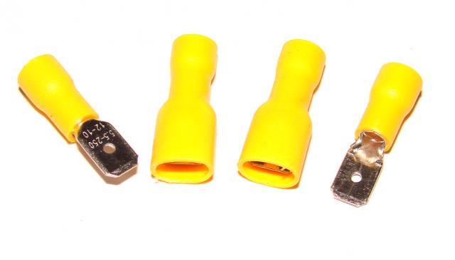 Этот вид клемм в народе называют «папа – мама». Соединение проводов осуществляется вставкой одного в другой элемент. Первый имеет вид удлинённой площадки – ножа. Ответная деталь имеет по сторонам овальные продольные загибы, которые зажимают входящий «нож».