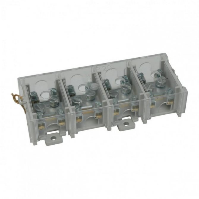 Основной провод приходит на один из винтовых зажимов, и вся колодка приобретает необходимый потенциал.