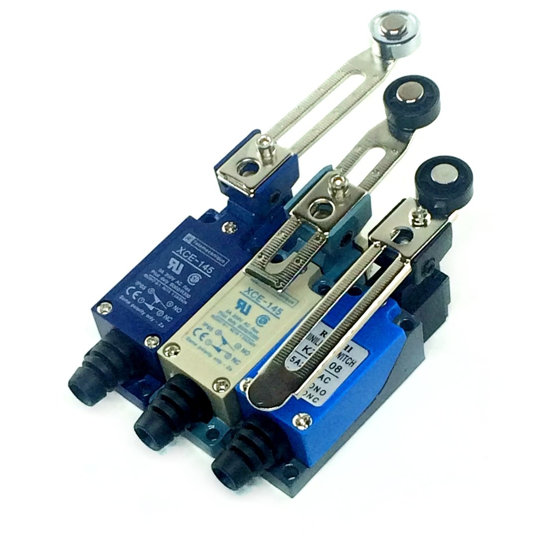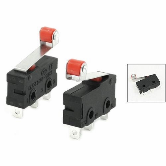 Существуют рычажные роликовые конструкции. Ролик установлен на поворотном рычаге, который, поворачиваясь, замыкает контактную группу внутри корпуса. Такая конструкция удобна в механизмах, где невозможно точно настроить силу и диапазон контакта с движущимся элементом из-за большой инерции, вибрации, неравномерного движения.