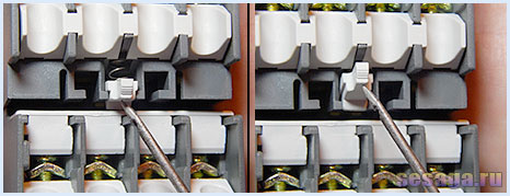 Фиксируется блок контактов на пускателе специальной защелкой. А чтобы блок снять, достаточно приподнять защелку и выдвигать блок в сторону защелки.