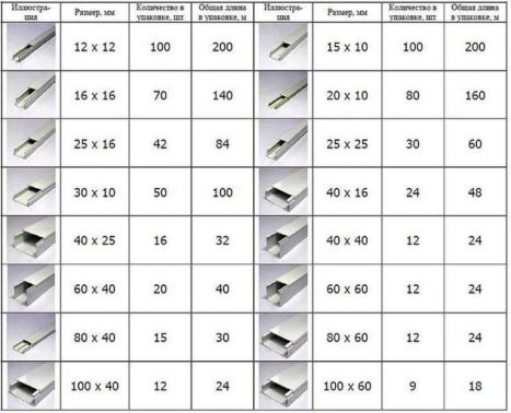 Условно кабель каналы подразделяются на несколько видов, представленных в таблице: