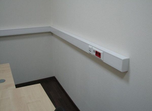 - парапетные кабель-каналы напоминают плинтусные, но устанавливаются на небольшой высоте от пола (80-100 см), они имеют симметричное сечение и достаточную ширину. Изделия приобрели широкую популярность при прокладке проводки в офисах и различных учреждениях, для домашнего интерьера такие каналы не подходят, так как будут сильно бросаться в глаза, исключение – интерьер в стиле лофт.