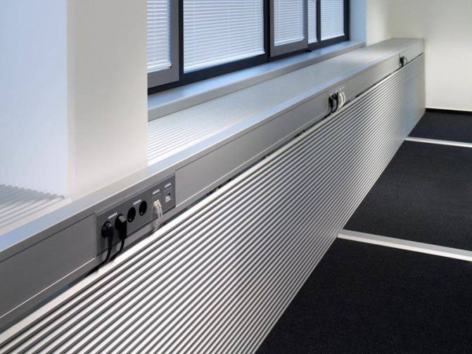 - напольный кабель-канал отличается сечением в форме полусферы. Благодаря такому решению сводится на нет риск споткнуться об короб и травмироваться. В квартирах данный вид каналов используется не так уж часто. Куда большей популярностью изделия пользуются в больших офисных помещениях типа open space, когда на одной площади надо обеспечить соответствующими условиями множество рабочих мест. В этом случае к столам подводят электричество, интернет, телефонную линию в напольных каналах. Требования в плане прочности к таким изделиям повышенные. Лучше взять алюминиевый короб. Сгодится и пластиковый, но не обычный, а усиленный, с дополнительными перегородками, которые можно использовать и в качестве разделителя между проводами разного назначения;