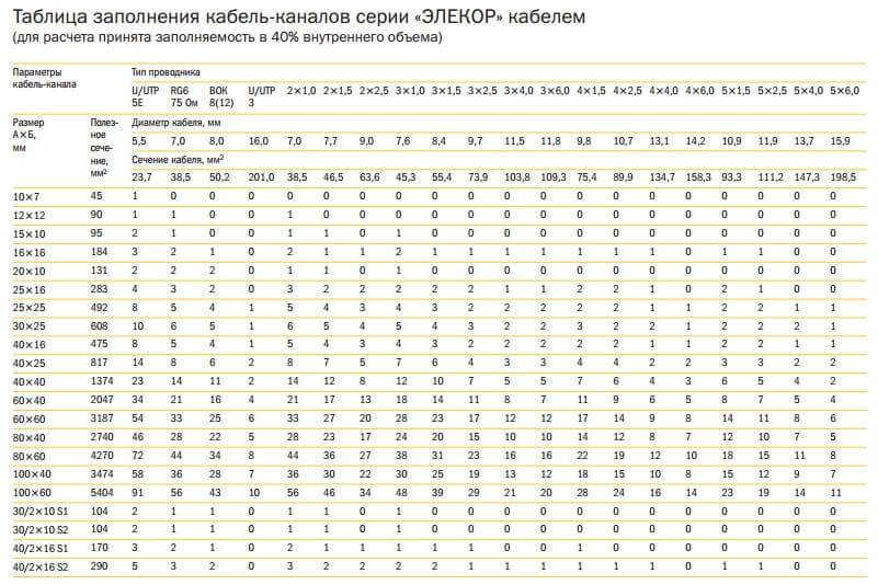 Некоторые «специалисты» советуют выбирать размер по принципу «лишь бы влезло». То есть размер канала должен быть таким, чтобы при наполнении его группой кабелей выполнялось основное требование — чтобы закрылась его крышка. Это в корне неверно.