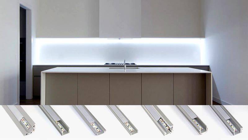 Кабель-каналы прозрачные выпускают в разных вариантах исполненияПри установке таких светильников внизу – создается эффект «парящей» мебели