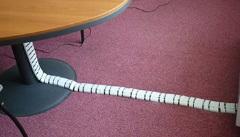 - Напольные. Используют для удобного передвижения, когда проводят электропроводку к столам, осветительным приборам, технике, находящейся далеко от стен. Кабель канал без проблем заменяет удлинители и переноски.