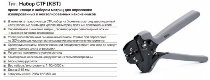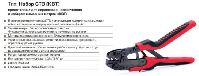 Среди отечественных производителей выделяется фирма КВТ и ее два набора для обжатия:
