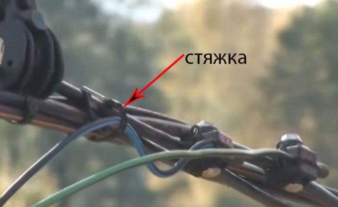 В конце подключенный отпаечный СИП загибается к основному и подтягивается к нему стяжкой. Делается это для того, чтобы при ветре контакт не подвергался механическим воздействиям и не обломился в дальнейшем.