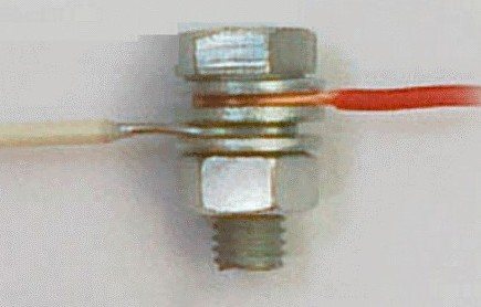Самым простым из них является соединение медной и алюминиевой жилы при помощи резьбового соединения. Для этого варианта понадобиться стальной болт с гайкой подходящего диаметра, несколько простых шайб и одна граверная. Монтаж такого соединения очень прост: между разнородными жилами устанавливается шайба, препятствующая непосредственному контакту меди с алюминием. Шайбы желательно выбирать покрытые чистым оловом или припоем на его основе. После затяжки болта соединение необходимо обмотать изоляционной лентой. Этот способ очень простой, но крайне ненадежный, поэтому его практически не используют.