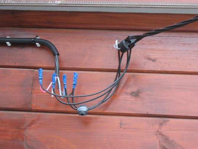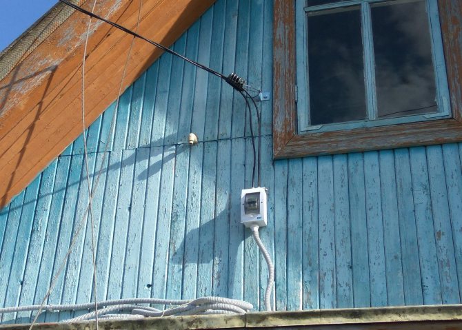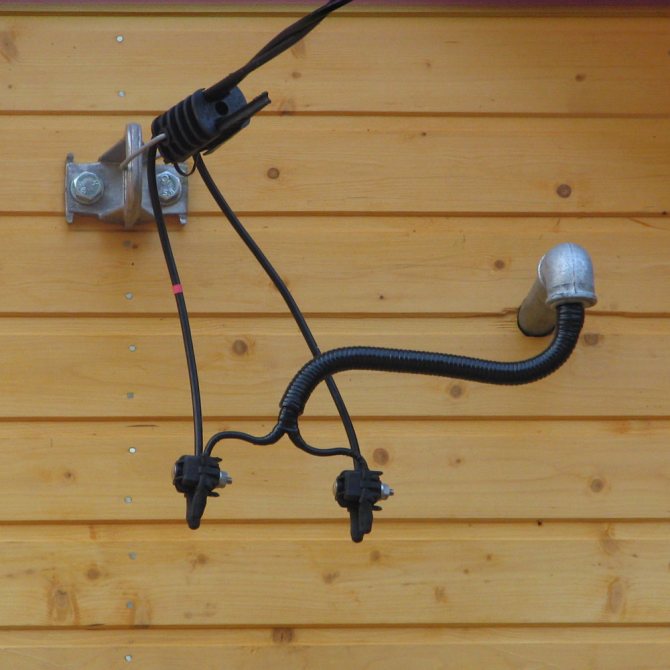 Независимо от того, где располагается наш узел учета, на столбе, в доме, на фасаде самого здания, нам нужно сделать ответвление от имеющейся воздушной линии и привести кабель в дом. Сделать это мы может двумя способами: