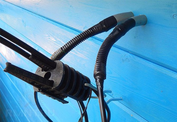 Ввод в дом и проход сквозь стену необходимо выполнить точно так же, как и в случае воздушной прокладки — в металлической гильзе. Запрещено прокладывать кабель под фундаментами и другими конструкциями. Более подробно о прокладке кабеля в земле вы можете прочитать в нашей следующей статье.