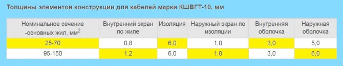 Толщина элементов, входящих в структуру КШВГТ-10