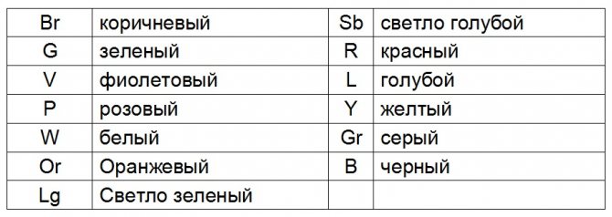- поправкой 1, в частности, в таблице A.1 исправлены два буквенных обозначения цветов. Для коричневого цвета обозначение «BR» заменено корректным обозначением «BN», для серого цвета обозначение «GR» заменено обозначением «GY».