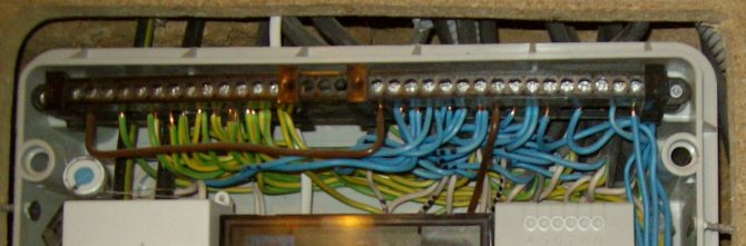— Если линия не защищена устройством защитного отключения (УЗО) или дифференциальным автоматом, и свет будет гореть в двух положениях. В этом случае узнать какой провод рабочий ноль (нуль), а какой защитный (заземление), можно просто отключив в щите учета и распределения электроэнергии вводной кабель от клеммы заземления. После чего так же проверить контрольной лампой все жилы и, опять же методом исключения, в положении, когда лампа не горит опознать проводник заземления.
