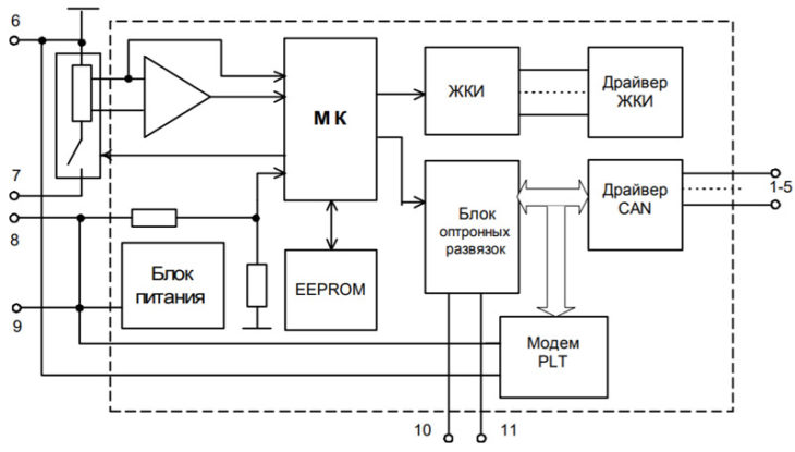 Параметры проходящей через устройство электроэнергии обрабатываются электронной платой, откуда данные поступают на жидкокристаллический дисплей, интерфейс и модем (для отдельных модификаций).