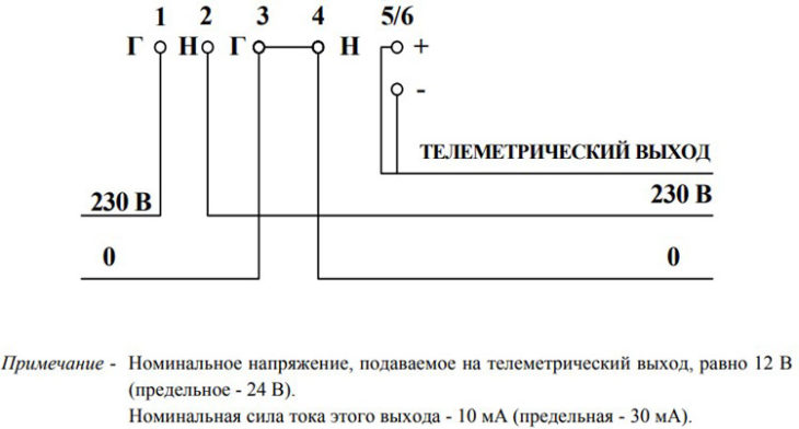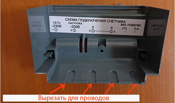 Схема подключения указа на внутренней стороне крышки самого счетчика.