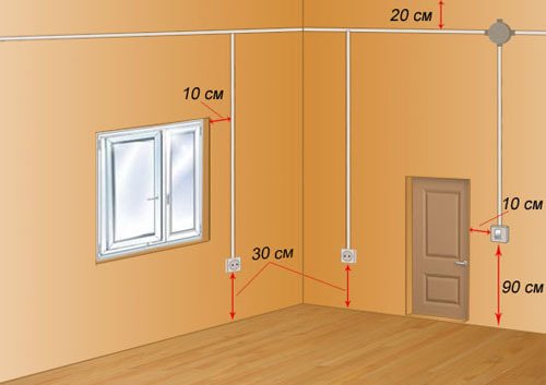 - Выключатели рационально располагать на расстоянии 90 см от пола, рядом с входом в помещение.