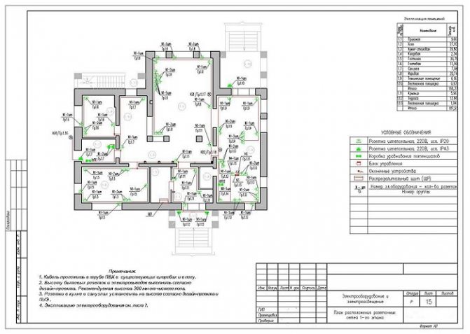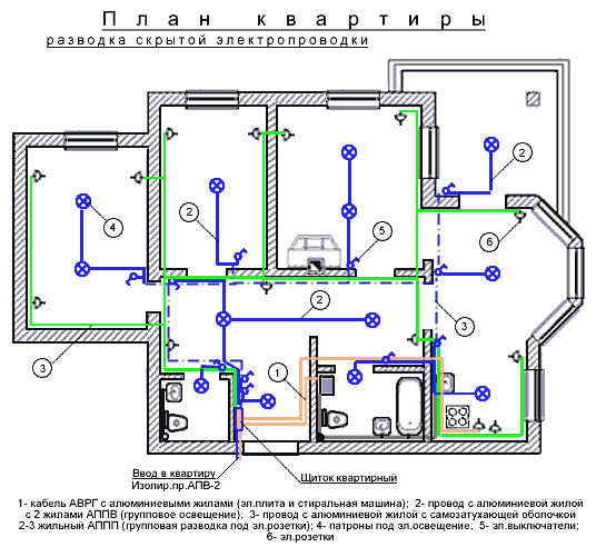 Окончательный вариант плана-схемы проводки в квартире