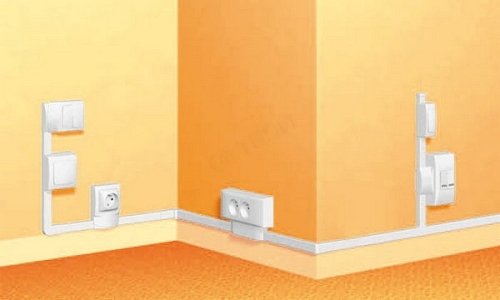 - Открытая проводка. Проходит в трубах и плинтусах. Высота прокладки в данном случае не нормируется. Во время монтажа нельзя прокладывать вместе осветительные и силовые провода. В этом случае лучше всего приобрести безопасные плинтуса, изготовленные из несгораемого материала.