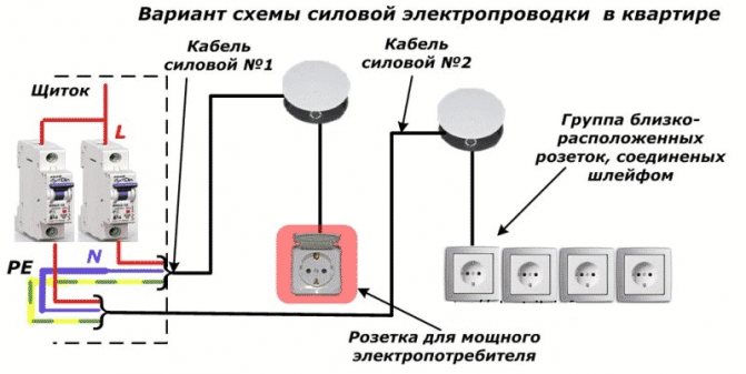 Подачу рабочего напряжения к электроприемникам обеспечивают шлейфы из двухжильного и многожильного провода. Для разводки используются проводники с медными или алюминиевыми жилами в оболочке из диэлектрика (используется резина, поливинилхлорид, тканевая оплетка).