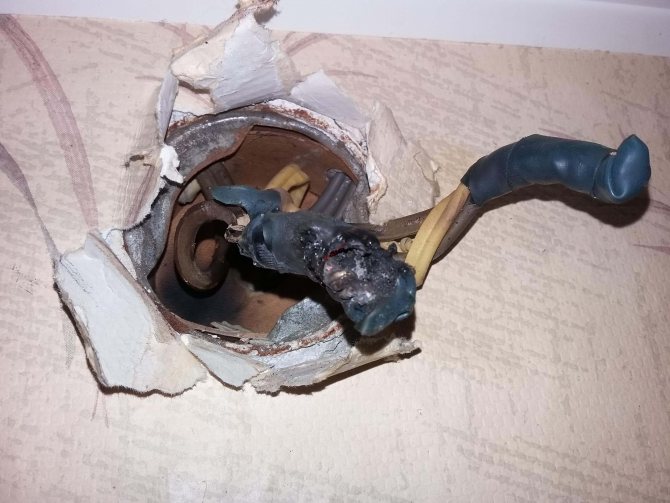 Если ситуация некритическая, нужно отключить свет и провести обследование розеток, выключателей и монтажных коробок. Пожар из-за проводки чаще всего возникает в этих местах при наличии некачественных скруток и контактов. Признаком дефекта является оплавленная пластмасса, копоть и почерневшие стены. Кабель может перегореть и в штробе. Определить это можно с помощью тестера. В таком случае придется менять часть проводки.