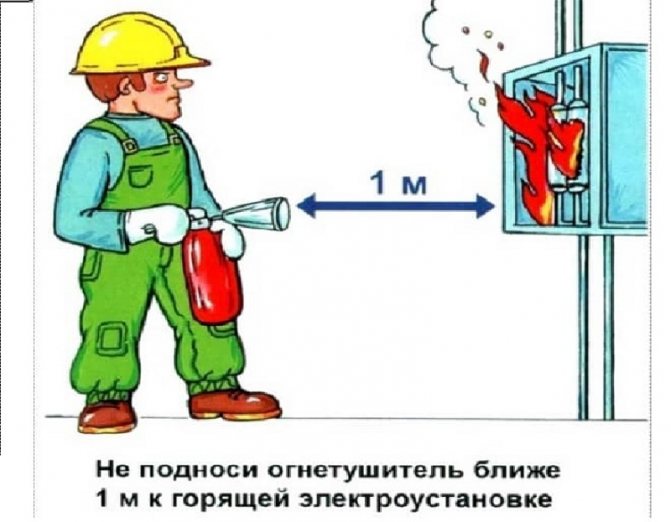 Но и они позволяют бороться с возгораниями только в устройствах до 1кВ. А все электроустановки свыше 1кВ должны предварительно обесточиваться.