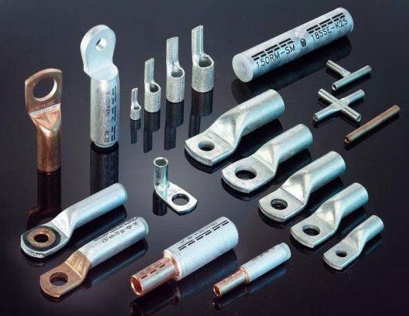Для жил из алюминия применяются соединительные детали из такого же материала. С одного конца находится контактная лопатка с отверстием, а с другой — трубчатое отверстие. Жилы соединяются с наконечником методом опрессовки специальным инструментом. Предварительно изделие смазывают кварцевазелиновой смазкой, что защищает от окисления.