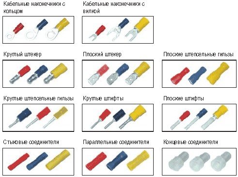 Существуют разные виды наконечников для применения с проводами разных модификаций и сечения. Рассмотрим самые популярные из них: