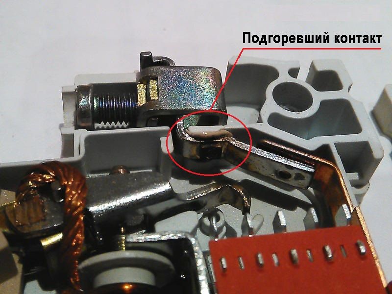 Подгоревшие контакты увеличивают общий нагрев автоматического выключателя