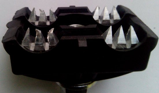 - Своеобразной внутренней «клеммы» из одной или нескольких симметричных пластин с шипами пирамидальной формы, которые располагаются в каждом из гнезд.