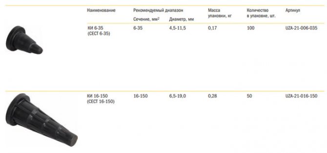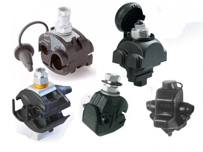 Существует достаточно большое разнообразие проколов для кабеля СИП. Большинство из них отличаются друг от друга диметром укладываемых в них проводов. Поэтому производители предлагают и малогабаритные зажимы с диаметром соединяемых кабелей от 6 до 95 мм², и стандартные – 35-150 мм².