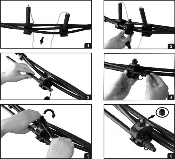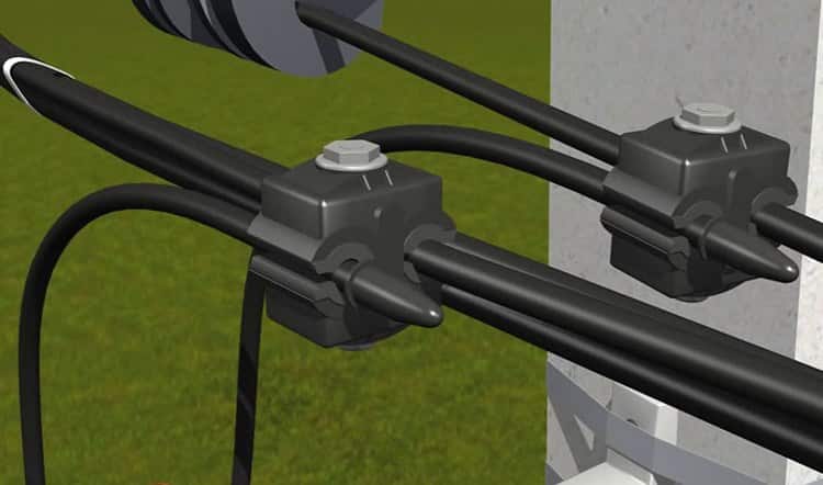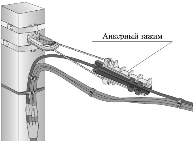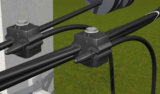 - У потребителя есть возможность работы с электросетью под высоким напряжением. Посредством зажима делается отводка от магистрального самонесущего кабеля, при этом не обесточивается линия.