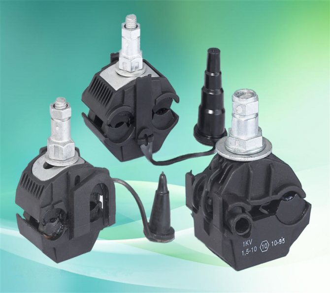 Нередко электрическая система является разветвленной, где к основной линии присоединяются несколько участков. Чтобы избежать расшивки кабеля на жилы с последующим соединением и их изоляцией, используются так называемые проколы для кабеля СИП, по-другому – прокалывающие зажимы для проводов.